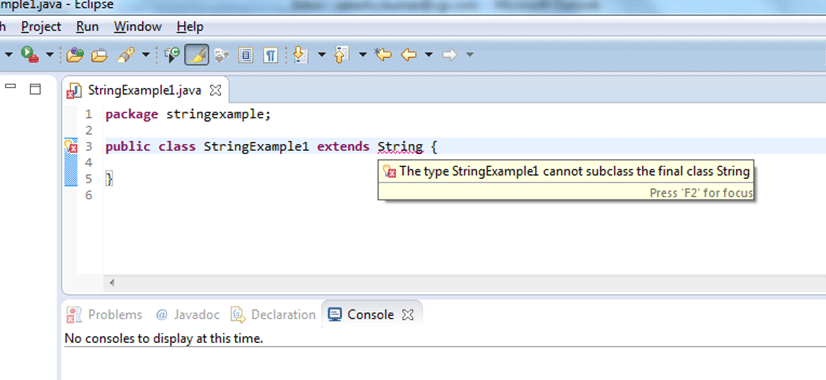 If you define your own class and try to extend String, it will give the compilation error. Let’s see an example –