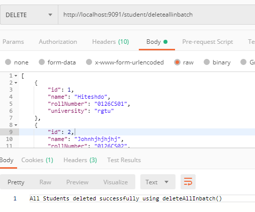 If we want to delete all student records we need to do studentRepository.deleteAllInBatch(). See the below sample code.