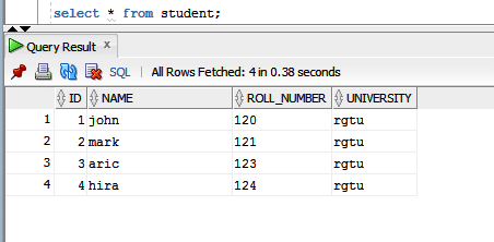 and we have some record in the database as below.