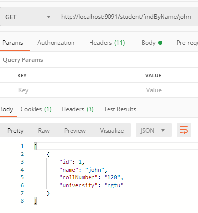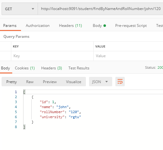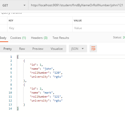 http://localhost:9091/student/findByNameAndRollNumber/john/120
