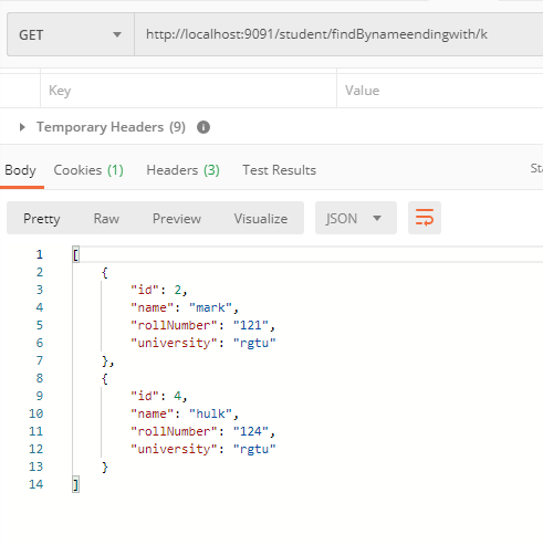 List<Student> response = (List<Student>) studentRepository.findByNameEndingWith(name);