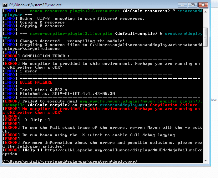 Problem – No compiler is provided in this environment Perhaps you are running on a JRE rather than a JDK during the maven build.