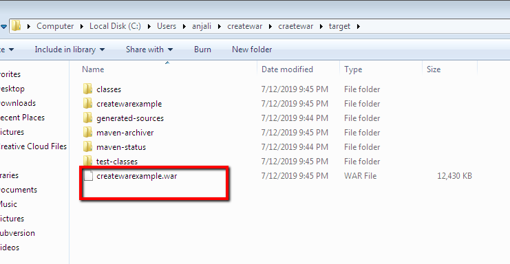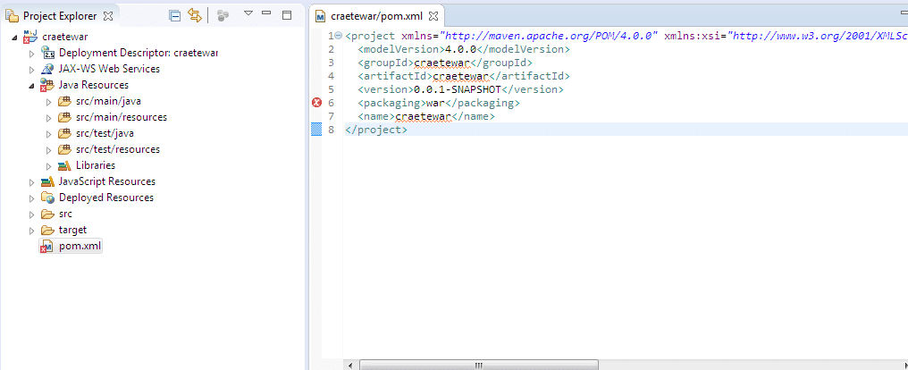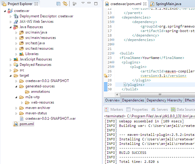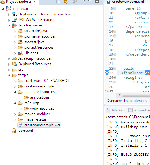 If you notice we have war file with a name craetewar-0.0.1-SNAPSHOT.war. We can change it.