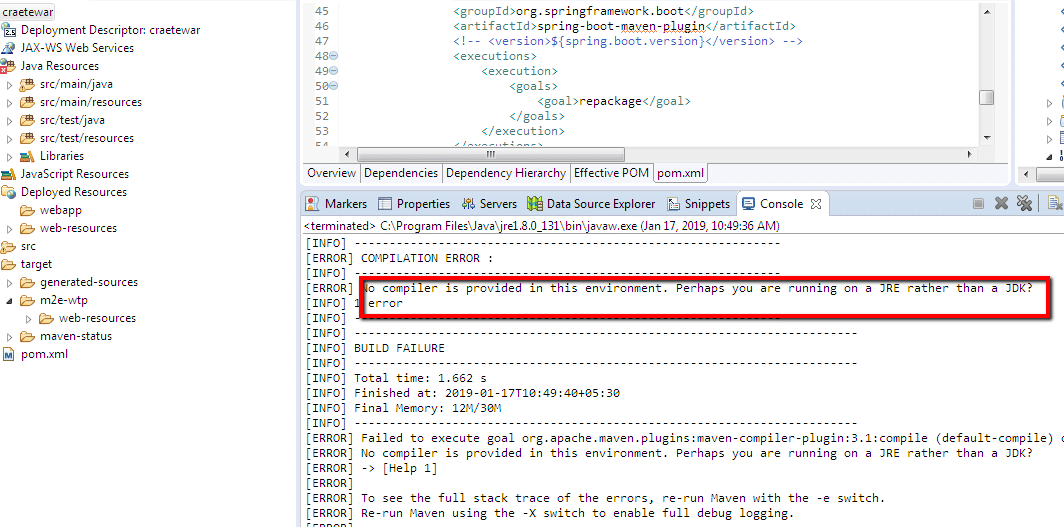 Step 1 – First we need to modify pom.xml. We need to add compiler where we have installed java.