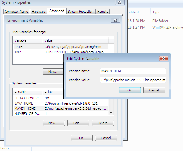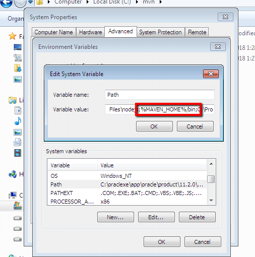 Make sure you have installed maven in your local machine and path has been set. For example, I have downloaded maven in my local machine and set the path as below.